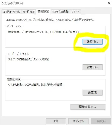 - Windows10では、上記のところの設定を変更すると致命的です